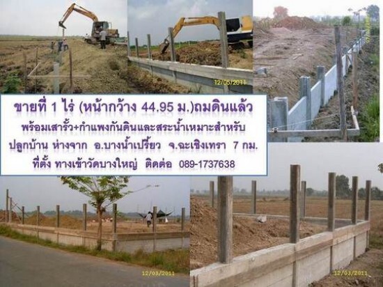 ขายที่ 1 ไร่ ถมดินแล้ว+เสารั้ว+กำแพงกันดิน+สระน้ำ