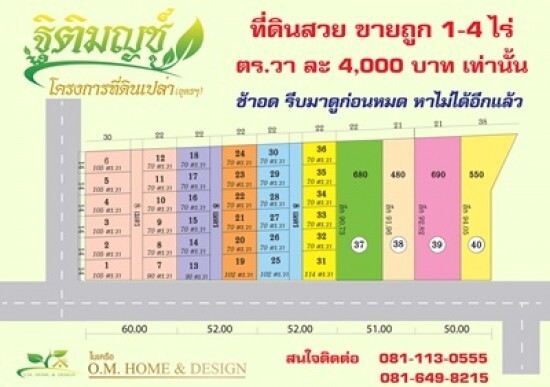 โครงการที่ดินเปล่าฐิติมญชุ์ ที่ดินขายราคาถูก1-4 ไร่ ตารางละ 4000 บาทเท่านั้น ติดถนนน้ำไฟฟ้าพร้อมใก้ลถนน 8 เลน โรงเรียน โรงพยาบาล มหาลัย เช็นทรัลอุดรสถานนีรภไฟ Ud สนใจติดต่อ คุณ ศิริศักดิ์ 081-113-0555 ช้าหมดแล้วจะเสียใจ