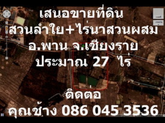 เสนอขายที่ดินสวนลำใยพร้อมเก็บ ต.สันติสุข อ.พาน จ.เชียงรายประมาณ 27 ไร่