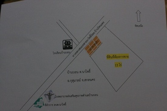 ขายที่ดิน 13 ไร่ (โฉนดพร้อมโอน) ติดทางลาดยาง ไร่ละ 98,000 บาท เป็นที่นาประมาณ 11 ไร่ ยังไม่ได้บุกเบิก 2 ไร่ ที่ตั้ง เยื้องโรงเรียนบ้านบอน ต.นาโพธิ์ อ.กุสุมาลย์ จ.สกลนคร สนใจสอบถามได้ตลอด 24 ชม. รส 083-3557489, 085-6097785