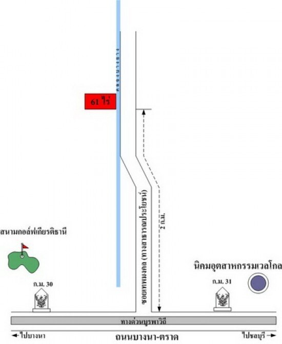 ขายที่ดิน 61 ไร่ ถนนบางนาตราด กม. 30-31