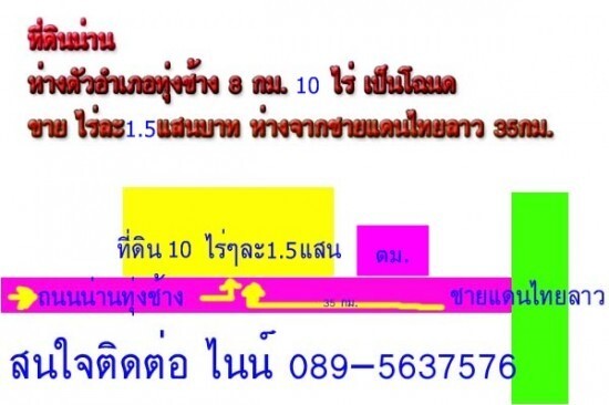 ขายที่ดินน่าน อ.ทุ่งช้าง 10 ไร่ๆละ 1.5 แสน 0895637576