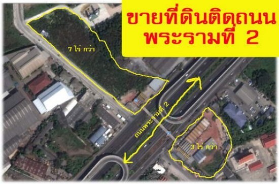 ขายที่ดินติดถนนพระรามที่ 2 เป็นที่ดินติดถนนพระรามที่ 2(ถนนตัดผ่านที่ดิน) ฝั่งช้าย 7 ไร่กว่า /ฝั่งขวา 3 ไร่ กว่า