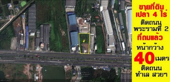 ขายด่วน!ติดถนนพระราม 2 ที่ดิน 4 ไร่ถมแล้ว หน้ากว้างติดถนน 40 เมตรสวยมากๆ