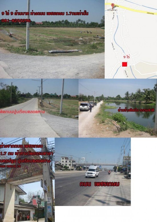 ขายที่ดิน นครปฐม อ เมือง 9ไร่ 9 ล้าน ห่างถนน เพชรเกษม 1.7 กม เข้าทางวัดธรรมศาลา