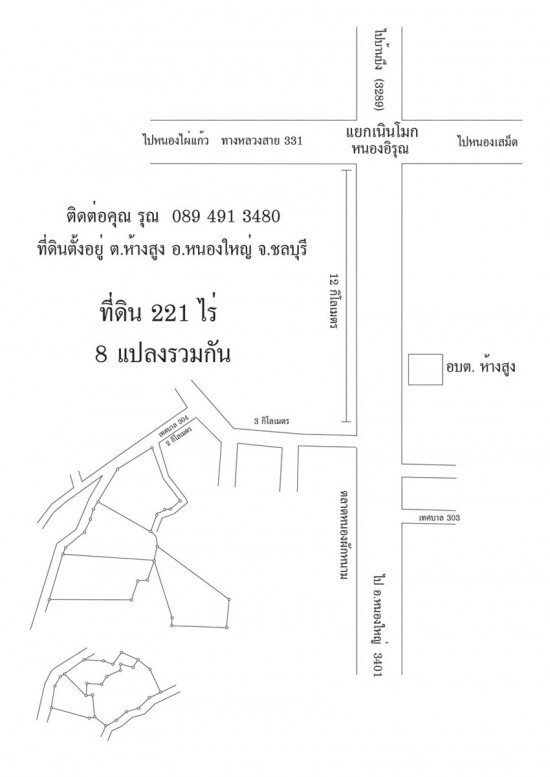 ขายที่ดิน 221 ไร่ 8 แปลงรวมกัน ห่างจากถนนสาย 331 เพียง 12 กิโลเมตร ราคาถูกมาก