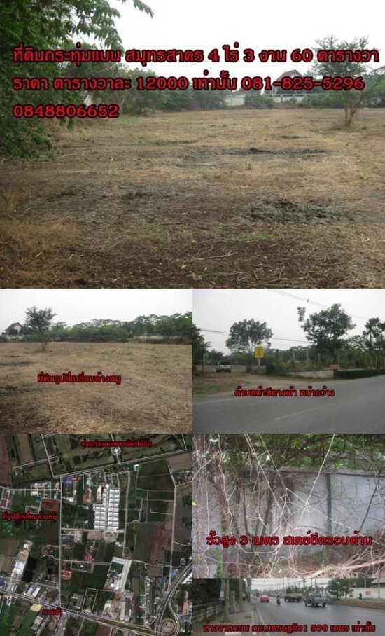 ที่ดินกระทุ่มแบน สมุทรสาคร 4 ไร่ 3 งาน 60 ตารางวา ราคา ตารางวาละ 12000 เท่านั้น ที่ดินสวย ที่ดินถูก