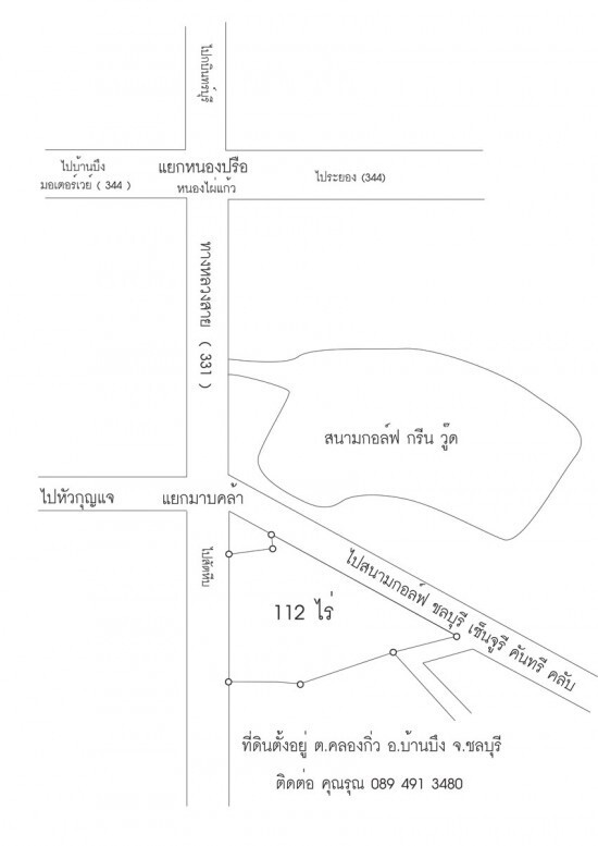 ขายที่ดิน 112 ไร่ อยู่ติดถนนสาย 331 แยกมาบคล้า ปากทางเข้าสนามกอล์ฟ ชลบุรี เซ็นจูรี คันทรี คลับ