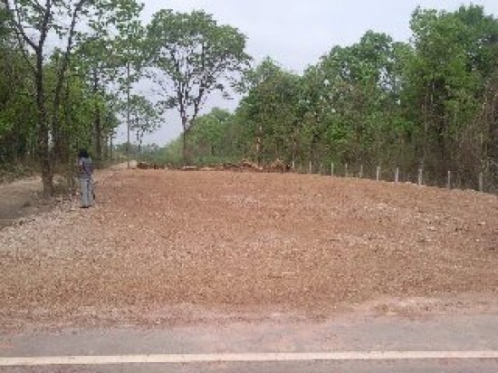 ติดถนนลาดยาง หน้ากว้าง 20 เมตร ด้านหน้าถมแล้วลึก 40 เมตร ด้านหลังปลูกมันสำปะหลัง