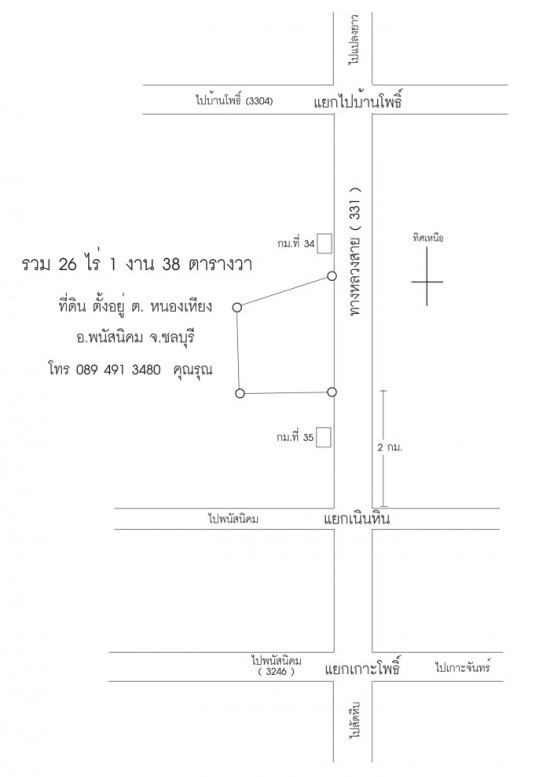 ที่ดิน 26 ไร่ ติดถนนสาย 331 อยู่ในพื้นที่สีม่วง โทร 089 491 3480