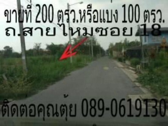 ขายที่ดินแปลงสวย100 ตรว.2 แปลงติดกันแต่ละแปลง หน้ากว้าง15x26 สายไหม18 ขายตารางละ 22,000 บาท