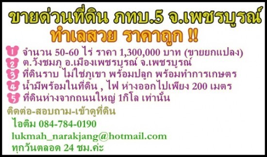 ขายด่วนที่ดิน ภทบ.5 ต.วังชมภู อ.เมือง จ.เพชรบูรณ์