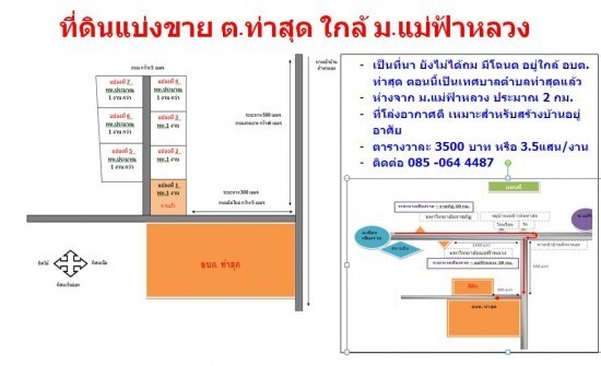 ขายที่ดิน ใกล้มหาวิทยาลัยแม่ฟ้าหลวง