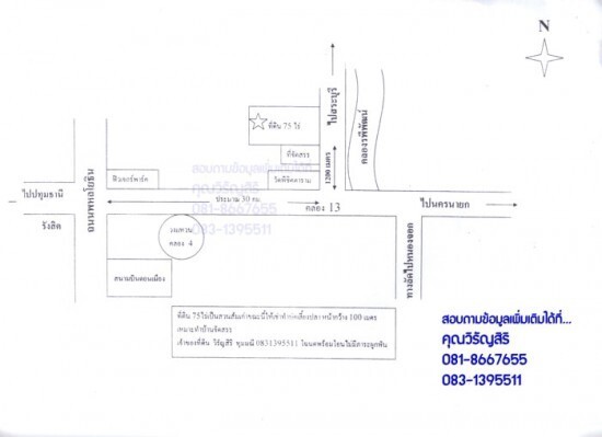 เนื้อที่ 75 ไร่ (หน้ากว้าง 100 เมตร)