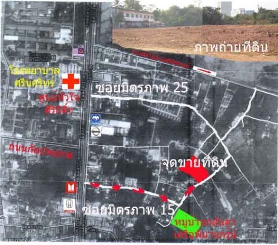 ที่ดินแบ่งล็อคขาย หน้ารพ.ศรีนครินทร์ ซอยมิตรภาพ15 ปรับถมดินสูง 60 เซ็นติเมตร ห่างจากถนนมิตรภาพ 450 เมตร เหลือแค่ 3 ล็อค ราคา 10,000 บาท/ตารางวา