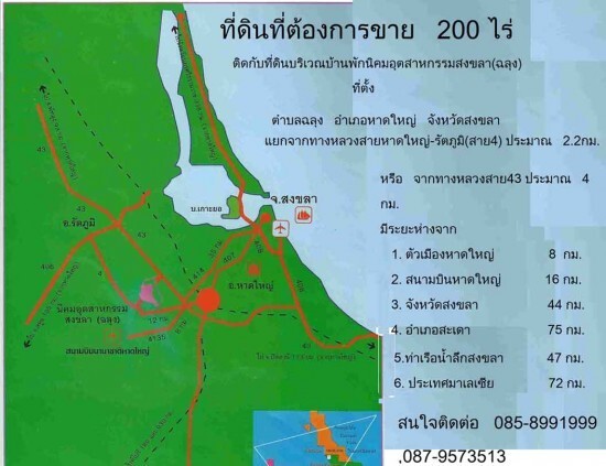 1.ขายที่ดินโครงการจัดสรร 200 ไร่ ติดเขตอุตสาหกรรมฉลุง จังหวัดสงขลา