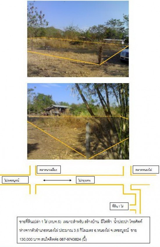 ขายที่ดินเปล่า 1 ไร่ (ภบท.5) เหมาะสำหรับ สร้างบ้าน มีไฟฟ้า น้ำประปา โทรศัพท์ ห่างจากตัวอำเภอหนองไผ่ ประมาณ 3.5 กิโลเมตร อ.หนองไผ่ จ.เพชรบูรณ์ ขาย 130,000 บาท สนใจติดต่อ 087-9743824 (บี้)