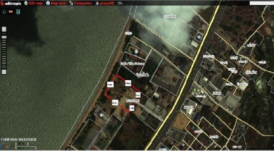 - ที่ดินด้านติด ทะเล ยาว 106 เมตร ด้านหลังยาว 96 เมตร ด้านข้าง ยาว 144 เมตร (หันหน้าเข้าหาที่ดินอยู่ด้านซ้ายมือเรา) และด้านข้างอีก ยาว 142 เมตร (ลักษณะที่ดิน สี่เหลี่ยมคางหมู)