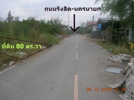 ห่างถนน รังสิต-นครนายก 80 ม. ติดถนนลาดยาง แยก 4 โฉนด พร้อมสร้าง ห้องแถว