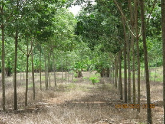 - แปลงนี้อายุ 7 ปี ลำต้นใหญ่สมบูรณ์ วัดรอบลำต้น 60 เซนติเมตร เนื้อที่ประมาณ 36ไร่ ยางประมาณ 2,700 ต้น ปลูกเต็มพื้นที่ยางพาราที่ปลูกใช้พันธุ์ยาง 600