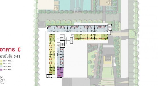 ห้องมุม + วิวสระน้ำ C-2811 ชั้น 28 ขนาด 26 ตร.ม.