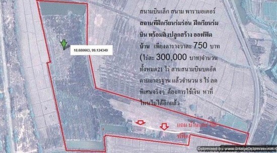 ด่วนที่สุด ขายสนามบินเล็ก สนาม พารามอเตอร์ สถานที่ฝึกเรียนร่มร่อน ฝึกเรียนร่มบิน พร้อมสิ่งปลูกสร้าง ออฟฟิต บ้าน เพียงตารางวาละ 750 บาท(ไร่ละ 300,000 บาท)จำนวน 21 ไร่ ลานสนามบินบดอัดตามมาตรฐาน แล้วจำนวน 8 ไร่ ลดพิเศษจริงๆ ต้องการใช้เงิน หาที่ไหนไม่ได้อีกแล้ว