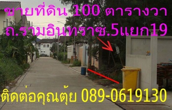 ขายที่ดิน 100 ตรว.(ถมแล้ว ถ.รามอินทราซ.5 แยก 19 เขตบางเขน กทม.ขาย 25,000/ ตรว