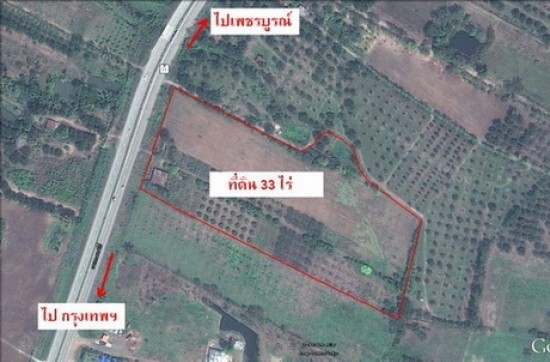 ขายที่ดิน 33 ไร่ (โฉนด) ติดทางหลวงแผ่นดินหมายเลข 21 หน้ากว้างประมาณ 150 เมตร ห่างโลตัส บิ๊กซี 10 กม. อ.เมือง เพชรบูรณ์