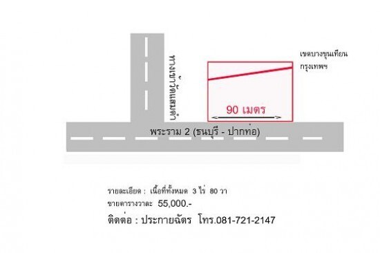 1. ที่ดิน เนื้อที่ 3 ไร่ 80 วา ขายตารางวาละ 55,000 บาท ( ที่ดินนี้ติดถนนพระราม 2 )