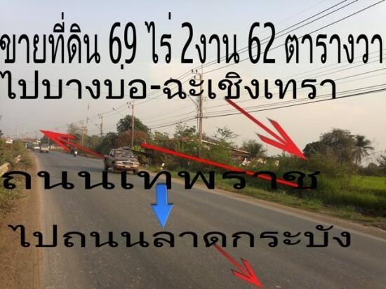 ขายที่ดิน 69 ไร่ 2 งาน 62 ตารางวา อ.บางบ่อ จ.สมุทรปราการ(ห่างสนามบินสุวรรณภูมิเพียง 23 กม.)ขายไร่ละ 3.5ล้าน ที่ดินตั้งอยู่ถนนเทพราช-ลาดกระบัง ห่างจากทางด่วนมอเตอร์เวย์กรุงเทพ-ชลบุรี เพียง 7 กม.(ให้เวลาเดินทางเพียง 15 นาที) ห่างจากสนามบินสุวรรรภูมิเพียง 23 กม.(หรือใช้เวลาเดินทางเพียง 35 นาที) ห่างจากถนนสุวินทวงศ์เพียง 14 กม.ปัจจุบันถนนเทพราชจะขยายถนนเป็น 4 เลน ที่ดินเหมาะสำหรับทำโกดังเก็บของ ,ทำโรงงาน,ทำโครงการบ้านจัดสรร สนใจติดต่อสอบถามได้ที่คุณ อำนาจ 085-1946234 หรือคุณธีรภัทร (ตุ้ย) 089-0619130 หรือเข้าชมเว็บไซต์ได้ที่ http://www.tplandhouse.com ศูนย์บริการรับฝากขาย บ้าน ที่ดิน ขายฝาก ซื้อ เช่า โฆษณา รับถมที่ดิน ฟรีโฆษณา