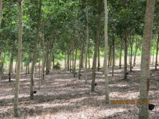 - ยางพาราอายุ 6 ปี เนื้อที่ 200 ไร่ วัดรอบลำต้น 40 เซนติเมตร