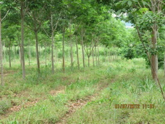 - ที่ดินแปลงนี้ปลูกยางพาราอายุ 5 ปี รอบลำต้น 20-30 เซนติเมตร ปลูกในเนื้อที่ 1,183 ไร่ ประมาณ 82,810 ต้น ใช้พันธุ์ยาง 600