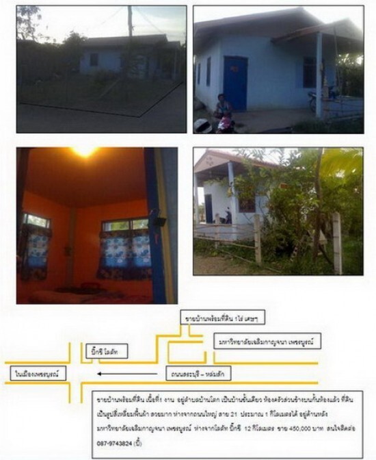 ขายบ้านพร้อมที่ดิน เนื้อที่1 งาน อยู่ตาบลบ้านโตก เป็นบ้านชั้นเดียว ห้องครัวส่วนข้างบนกั้นห้องแล้ว ที่ดินเป็นรูปสี่เหลี่ยมพื้นผ้า สวยมาก ห่างจากถนนใหญ่ สาย 21 ประมาณ 1 กิโลเมตรได้ อยู่ด้านหลังมหาวิทยาลัยเฉลิมกาญจนา เพชรบูรณ์ ห่างจากโลตัท บิ๊กซี 12 กิโลเมตร ขาย 450,000 บาท สนใจติดต่อ 087-9743824 (บี้)