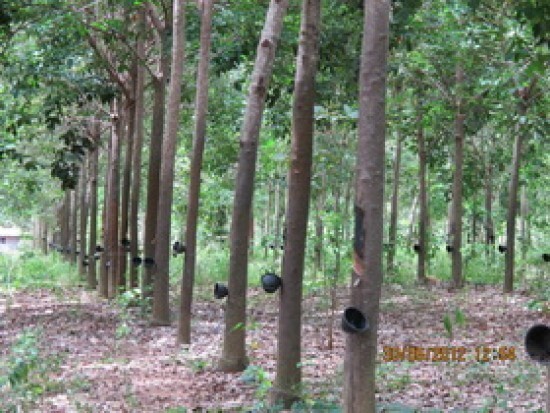 - ที่ดินแปลงนี้ปลูกยางพาราอายุ 8 ปี รอบลำต้น 30-50 เซนติเมตร ปลูกในเนื้อที่ 180 ไร่ ประมาณ 65 ต้น/ไร่ ใช้พันธุ์ยาง 2025