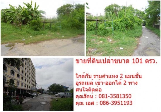 ขายที่ดินเปล่าขนาด 101 ตรว. ใกล้กับ รามคำแหง 2 แมนชั่น