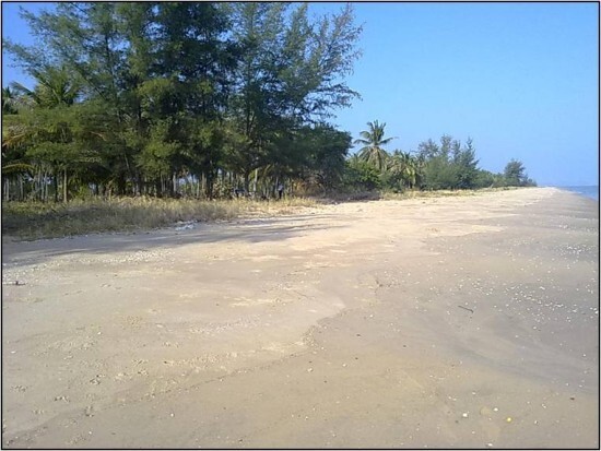 ก. แปลงแรก ด้านหน้าติดทะเลกว้าง 55 ม. ลึก 100 ม.