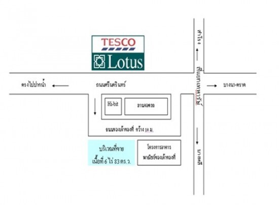 ขายที่ดิน 6 ไร่ 83 ตร.วา. ตร.วา.ละ 60,000 บาท อยู่ติดถนนศรีนครินทร์ ตรงข้ามโลตัสศรีนครินทร์ (เจ้าของขายเอง) เบอร์โทร 081-1130065 คุณเจนวิทย์ ,