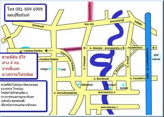 ขายที่ดินไทรน้อย ติดถนนซอย บางกรวย-ไทรน้อย ใกล้รถไฟฟ้าสายสีม่วง ห่างจากถนนกาญจนาภิเษก (ตลิ่งชัน-สุพรรณบุรี) เลี้ยวซ้ายจากแยกบางบัวทอง (ติดกับ ไทวัสดุ) เข้าไป 4 กิโลเมตร ตรงข้ามกับสนง.ปิ่นทองแลนด์ เจ้าของขายเอง เนื้อที่ดิน 8-0-0 ตรว.หน้ากว้าง 38 เมตร ยาว 200 กว่าเมตร ราคา ไร่ละ 9 ล้าน ราคารวม 72,000,000 บาท ระยะทางห่างจาก รถไฟฟ้าสายสีม่วง ประมาณ 7 กม. ถึงก่อนไทวัสดุ