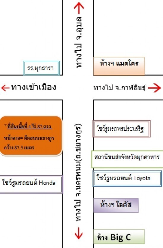 - ใกล้กับสถานีขนส่งมุกดาหาร ,ห้างสรรพสินค้า( แมคโคร ,โลตัส ,บิ๊กซี)