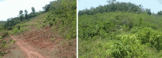 ติดถนนแนวยาว ที่ดินลาดชันเนินเขา ชันไม่มากประมาณ20องศา ขอทุนปลูกยางแล้วแต่ไม่ได้ดูแล ราคายังต่อรองได้ เจ้าของรีบขาย ซื้อไว้ปลูกยางหรือขายหน้าดินก็ได้