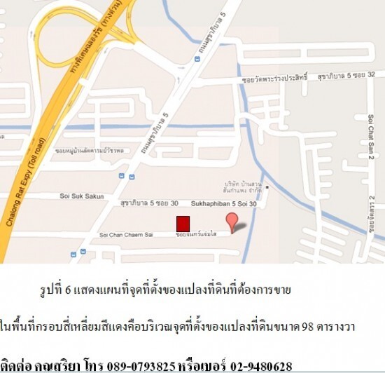 ในพื้นที่กรอบสี่เหลี่ยมสีแดงคือบริเวณจุดที่ตั้งของแปลงที่ดินขนาด 98 ตารางวา