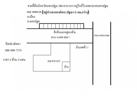 ที่ ดิน 300 ต.ร.ว. อยู่ใกล้โรงพยาบาลนครปฐม ห่างจากองค์พระปฐมเจดีย์ 1 กม. กว่าๆ