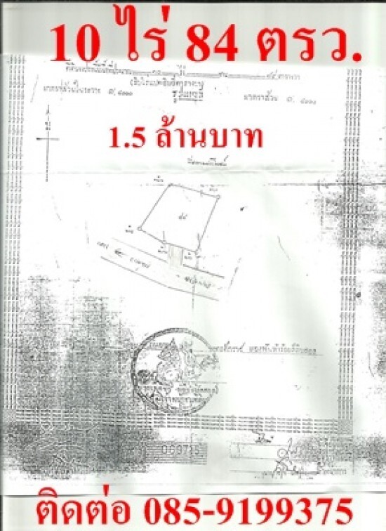 ขายที่ดิน จำนวน 10 ไร่ 84 ตรว. ราคา 1.5 ล้านบาท