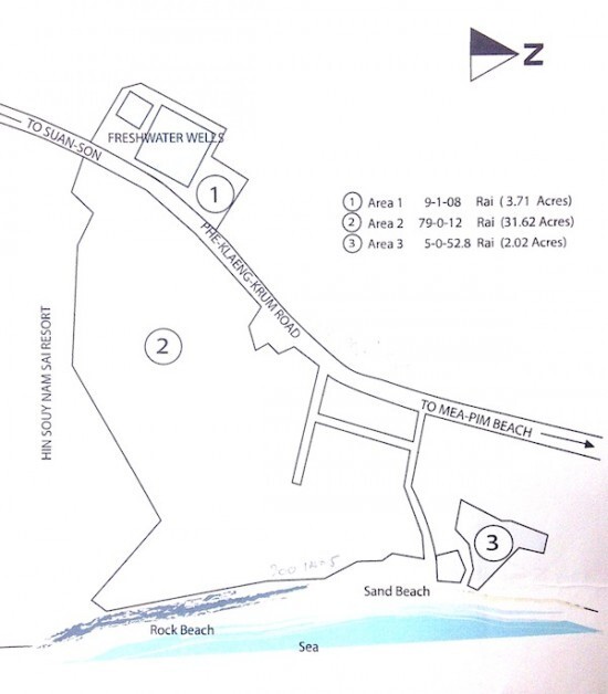 ส่วนที่ 2 สภาพทั่วไปที่ดิน 2 ใน 3 ตั้งอยู่บนเขามีต้นไม้ขนาดใหญ่อยู่ทั่วไป เนินเขาทางด้านทิศใต้ติดกับโครงการหินสวนน้ำใส เนินเขาทางด้านตะวันออกติดกับชายหาดประมาณ 200 เมตร พื้นที่ราบมีประมาณ 1 ใน 3 ของที่ดินทั้งหมด ที่ดินส่วนนี้ได้ตัดถนนเลาะไปตามไหล่เขา เป็นถนนกว้าง 8 เมตร เป็นถนนลูกรัง สามารถรองรับรถขนาดใหญ่ในการก่อสร้างได้