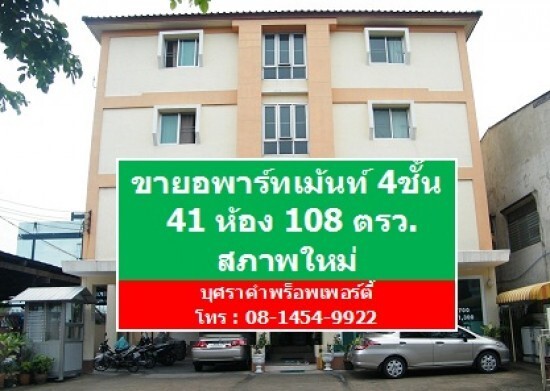 ขายอพาร์ทเม้นท์ 4 ชั้น 41 ห้อง 108 ตารางวา สภาพใหม่