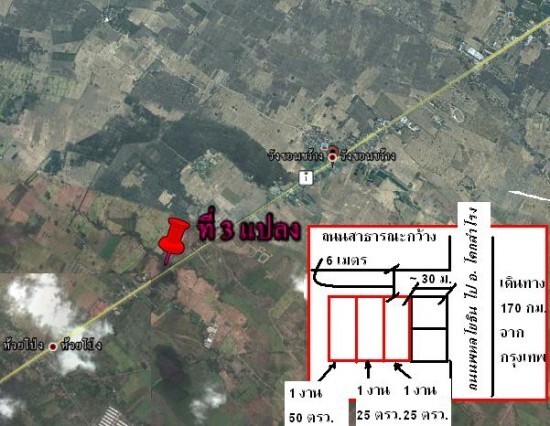 ขายที่ดิน 3 แปลง 1 ไร่ แบ่งขายได้ 30 ม. จากถนนพหลฯ โคกสำโรง ลพบุรี