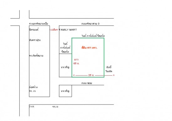 ที่ดินรวม 411 ตรว. เข้าออกได้ 2 ทาง