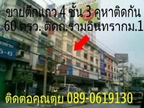 ขายอาคารพาณิชย์ 4 ชั้น 3 คูหาติดกันเนื้อที่ 60 ตรว.ติดถนนรามอินทรา(กม.1)ห่างเซ็นทรัลรามอินทราเพียง 300 เมตร ขายราคา 15 ล้าน
