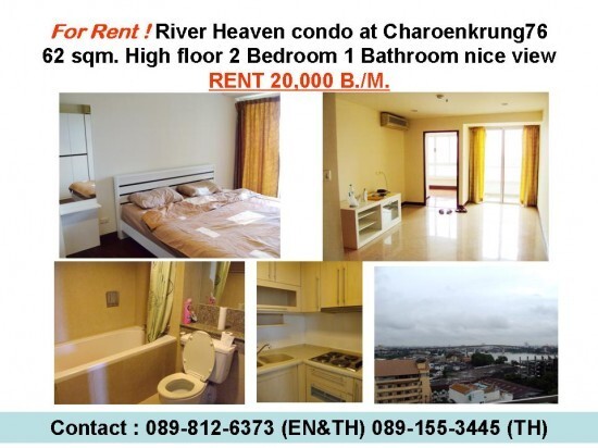 ให้เช่า ริเวอร์ เฮฟเว่น คอนโดหรู ริมแม่น้ำเจ้าพระยา ถ. เจริญกรุง76/1 ใกล้ BTS วิวแม่น้ำ