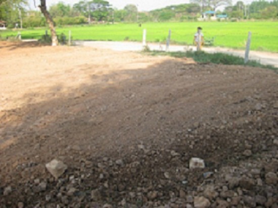 ที่ดินสวย เป็นรูปสี่เหลี่ยมจัตุรัส ติดถนนสองด้าน ด้านหน้าติดถนนคอนกรีต ฝั่งตรงข้ามเป็นที่นา